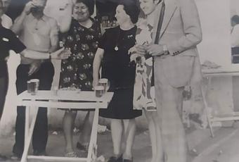 Tuvo que hacerse en domingo o festivo, más que nada por el traje de chaqueta que viste uno de ellos. Y acaso llegado el verano, por los vestidos de ellas y la manga corta de los otros. Todos están alrededor de una pequeña mesa de madera y sobre esta hay un plato que se adivina con cascarujas y varios vasos de espumosa cerveza. Es en blanco y negro, algo lógico, porque no entendería que esa imagen fuese en color, desdibujando el encanto de la mágica nostalgia que, sin duda, tiene. El grupo está situado delante de un quiosco que durante años hizo las veces de cantina en la estación de ferrocarril de mi pueblo. Aquel local lo regentaba una mujer que desprendía gracia a borbotones. En la foto se la ve haciendo un gesto que recuerda al de una folclórica entregada ante su público más incondicional. Lleva un vestido estampado y el resto ríe su ocurrencia, al tiempo que, en ese mismo instante, el fotógrafo disparaba la cámara.