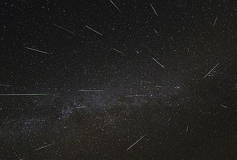 Perseidas 2016. Imagen combinando las detecciones de 34 meteoros de la corriente de las Perseidas encontradas en 30 fotogramas. Todos los fotogramas se obtuvieron con una cámara CANON EOS 5D Mark III provista de un objetivo Samyang de 14 mm, 30 segundos de exposición a f/2.8 e ISO 800. Todas las imágenes se tomaron entre las 2:10 y las 4:10 UTC del 12 de agosto de 2016 desde el Observatorio del Teide (Tenerife).
