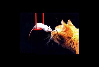 Por eso una noche, oculto y silencioso, el pequeño ratoncito asomó el morro por un agujerito. Se apartó y volvió a asomar el morro por el mismo agujerito. Hasta que finalmente salió de puntillas para no despertar con el más ligero ruido al gran gato negro.A cada paso que daba el ratoncito comenzaba a sentir tanto miedo que decidió dar media vuelta, pero justo en ese instante se topó de frente con los enormes ojos del gran gato negro.El ratoncito soltó un grito seguido de un saltito y cuando intentó huir sintió un zarpazo en su rabito. Con el rabito atrapado en las garras del gran gato negro, el ratoncito pensó que su vida pendía de un hilo, pero logró deslizar su rabito y escapar velozmente. Con ese tremendo susto el ratoncito comprendió lo importante que era obedecer a mamá.