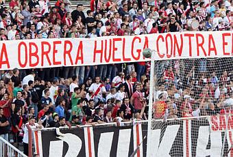 Una vez más el Rayo da muestras de su rebeldía y compromiso con la lucha de los trabajadores. La afición del Rayo, Los Bukaneros, son un ejemplo para otras aficiones del futbol español, una vez más son capaces de arrancar de la plantilla de su equipo la solidaridad con sus aficionados, os dejo el enlace a la entrada en La Mancha Obrera, si pinchais en la imagen os llevará a la noticia: