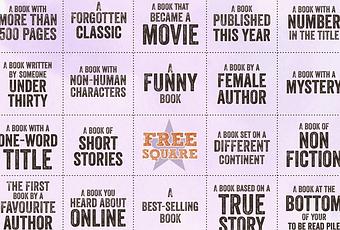Un libro con más de 500 páginas • Un clásico olvidado • Un libro que se haya convertido en película • Un libro publicado este año • Un libro con un número en el título • Un libro escrito por alguien menor de 30 años • Un libro con personajes no humanos • Un libro divertido • Un libro escrito una autora • Un libro con un misterio • Un libro con un título de una sola palabra • Un libro de relatos cortos • Un libro ambientado en un continente diferente • Un libro de no ficción • El primer libro de tu autor favorito • Un libro que hayas descubierto online • Un best-seller • Un libro basado en una historia real • Un libro al final de tu lista de pendientes • Un libro que le encante a un amigo • Un libro que te de miedo • Un libro que tenga más de 10 años • El segundo libro de una serie • Un libro por portada azul