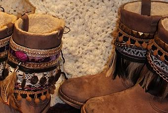Si no sabes qué regalar estas navidades, te proponemos el regalo perfecto: unos cubrebotas étnicos, hechos con pasamanerías, abalorios, cadenas y plumas.