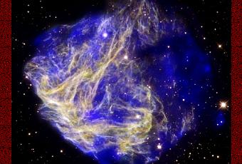 ¿Qué queda de ello? Justamente lo que vemos arriba: el remanente de una supernova. La foto corresponde al remanente de la supernova N49 que explotó hace aproximadamente 5.000 años y cuyo remanente se encuentra en la Nube Magallánica.