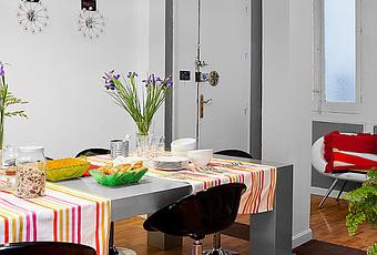 Además los colores llamativos crean un atmósfera divertida y fresca, ideal para los jóvenes inquilinos. La elección del mobiliario también contribuye a una decoración diferente y muy personal alternando la antigua estructura de la vivienda con muebles y elementos vanguardistas.