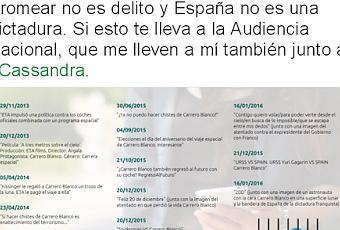 Estos días se ha montado un gran revuelo con la condena a la tuitera, o tuitero, Cassandra por los tuits que esta, o este, había escrito cachondeándose por el asesinato de Carreo Blanco. Tras esa condena han saltado a la paltestra los de siempre, Podemos e Izquierda Unida, justificando esos tuits como simples chistes y amparándose en la libertad de expresión para defender a la descerebrada, o descerebrado, protagonista.