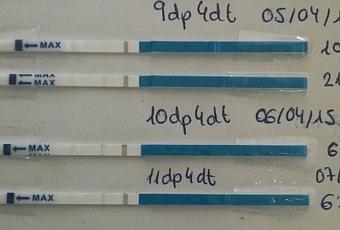 Tal y como os estáis imaginando, me volví loca con los tests, deseando ver una progresión en la segunda raya. Si se marcaba más, significaba que la hormona iba en aumento. Y así fue ocurriendo.