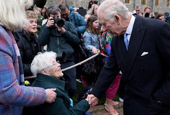 Carlos, de 75 años, acompañó a la reina Camila y otros miembros de la familia real a la Capilla de San Jorge, de estilo gótico, para el tradicional compromiso anual.