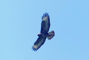 La silueta en vuelo del ratonero es muy característica, una rapaz de tamaño mediano, compacta, con alas anchas, en las cuales la mitad inferior clara y la superior oscura Consume una gran variedad de presas, desde reptiles a pequeños mamíferos pasando por insectos grandes, lo cual explica en buena parte su éxito, ya que sin duda es la rapaz más frecuente en nuestras latitudes.