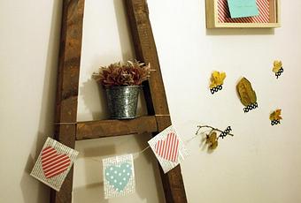 Para darle ese toque otoñal cogí unas hojas del campo y las pegué en la pared con washi tape.