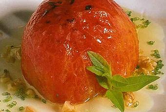 Escaldar los tomates un instante, y pelarlos con cuidado para que no se rompan.