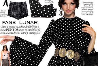 ¿Y qué tendencias nos propone elle en este mes de abril? Empezamos por los lunares, saquemos a pasear nuestro lado más folclórico y sumemos puntos extra en sandalias de cuña, blusas de aire retro y maxigafas.