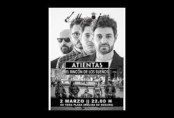 El rincón de los sueños sigue presentando las canciones de su anterior disco y su nuevo single, la banda quiere presentarnos muchos más hits en este show. Atientas es la segunda banda de la jornada, proyecto interesante que abrirá las puertas sonoras de su repertorio y nos permitirá conocerles mejor.