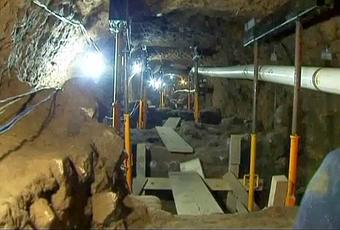 Como ya indicamos en la primera parte de esta noticia (enlace) se habian detectado tres camaras bajo la piramide de quetzatcoal ,tras un largo tunel lleno de escombros y con unas dimensiones muy pequeñas por las que apenas pasaba un pequeño robot con el que podian ir avanzando para poder alcanzar el final de este.Ahora hemos sabido que estan llegando al otro lado del tunel y que se confirma la existencia de las tres camaras en las cuales no se sabe que nuevos descubrimientos depararan.Aqui un adelanto de la noticia al proximo hallazgo: