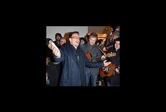 Bono, el cantante de U2 y Glen Hasard, la voz del grupo irlandés The Frames, quisieron celebrar la Nochebuena poniéndole su toque musical a Grafton Street, una céntrica calle de Dublín.Y lo hicieron por un motivo solidario: ayudar a la organización benéfica Peter McVerry Trust, encargada de prestar su apoyo y sus servicios a personas sin hogar. Con Bono estuvo su esposa, Ali Hewson.