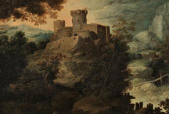 (Óleo Paisaje con un Castillo, primera mitad del siglo XVII, del pintor barroco español Francisco Collantes, Museo del Prado, Madrid.)