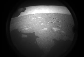 Esta es la primera imagen enviada por el Perseverance Rover desde Marte, ayer 18 de febrero de 2021. La vista está parcialmente oscurecida por una cubierta de polvo. Después de un viaje de siete meses, el rover de la NASA aterrizó con éxito en el Planeta Rojo.