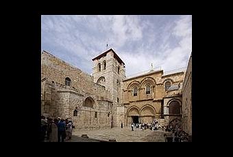 Esta antigua iglesia del santo sepulcro sufrió sucesivas destrucciones, remodelaciones y reconstrucciones, con lo cual del original quedará poco si algo queda, : construida en 335 fue remodelada por Justiniano dos siglos después, destruida por Cosroes II en 614, reedificadas por el emperador bizantino Heraclio en 629, destruida en 1009 por el califa Hakem, reconstruida por otro emperador bizantino Constantino Monomaco en 1048, remodelada por los cruzados en 1099. El caso es que en todos estos vaivenes se debieron perder muchas de las reliquias que contenía: la corona de espinas, los clavos, la cruz, la esponja con la que le dieron a beber en la cruz, incluso la piedra con la que tropezó María camino de Belen.