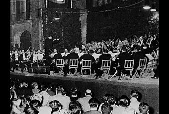 El Festival Internacional de Santander en su antigua y añorada sede de la Plaza Porticada.Dirige la orquesta Ataúlfo Argenta.
