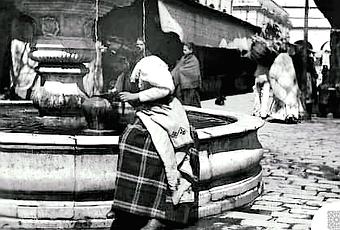 ¡Que estampa!, para los qué aún no la sitúen, estamos en el desaparecido Mercado de la Encarnación, lo de hoy en día es un parque temático que nada tiene qué ver. Antaño la fuente quedaba dentro del antiguo mercado y de ella se abastecían de agua los vecinos y tenderos del mercado...
