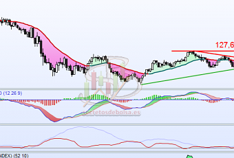 Si observamos la gráfica mensual podemos ver cómo en este marco temporal la cotización ha conseguido superar la directriz bajista de gran consistencia en el tiempo ya que se trata de una directriz que acompaña al precio desde mediados del 2007. Además podemos también ver la divergencia alcista que se dibujó entre el Macd y el precio entre 2009 y 2012 y que parece que está comenzando a dar sus frutos.