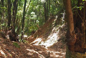 El propio nombre de la ruta ya da indicios de que esconde algo especial. Y en cuanto te internas en el sendero empiezas a sentir esos indicios. Rayos de luz que se cuelan entre los árboles creando un sugerente juego cromático, un silencio solo roto por tus pasos crujiendo sobre una alfombra de hojas secas en pleno verano, jirones de nubes enganchados en las ramas, el vuelo bajo y fugaz de lo que podría ser un búho cruzándose en tu camino y ella...la magia.