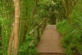 Tendremos zonas donde descansar y disfrutar del entorno. Llegaremos a una cantonera y una fuente. Una barandilla rústica nos guiará y podremos disfrutar de la vista de lo que queda de la “Selva de Doramas”. Finalmente llegaremos a un punto que atraviesa el antiguo canal de agua y conduce hasta el asfalto. Iremos a parar a una zona cercana al aparcamiento y Centro de Interpretación. Este sendero se puede hacer tanto desde el denominado “Sendero del Bosque” así como partiendo del “Sendero del Laurisilva” ya que ambos finalizan en este punto.