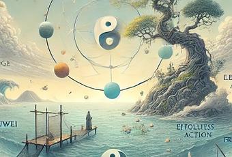 - La muerte y la vida son diferentes estadios como las estaciones o la historia de la mujer de Zhuangzi: Aunque el Dao es incognoscible, en los textos de Zhuangzi se describe como una realidad paradójica compuesta de contrapuestos, estos son, el yin y el yang, dos fuerzas que se contrarrestan entre sí. En la historia de Zhuangzi se habla de la muerte y la vida como un ejemplo concreto de ello y se explica que la vida tiende naturalmente a la muerte, al igual que después del invierno viene la primavera. Por tanto, el mayor enemigo del hombre es intentar eludir la realidad y no aceptar las leyes de la Naturaleza, porque te perseguirán allá donde vayas.