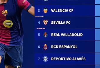 El equipo más joven de LaLiga es el Barcelona, con 23,4 años de media, superando en más de un año al siguiente clasificado, que es la Real Sociedad. A partir de ahí, hay varios equipos muy igualados en esta clasificación, destacando equipos como el Valencia, Real Valladolid o Español, y nuestro Sevilla FC, todos ellos por debajo de los 26 años de media.
