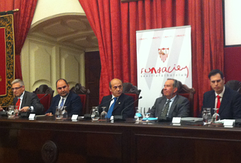 En el Paraninfo de la Universidad de Sevilla tuvo lugar una jornada de conferencias enmarcadas en el ciclo “Deporte y Sociedad” organizadas por la Universidad de Sevilla y el Sevilla F.C.