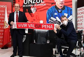 El presidente del Sevilla, José Castro, aseguró que "nunca un ' Dorsal de Leyenda' ha sido tan merecido, porque si alguien encarna nuestro lema del 'Nunca se rinde'"es Unzué", y reprodujo el típico cántico de los años 90 en el Sánchez-Pizjuán: "Ahí está, ése es..., es Juan Carlos Unzué".