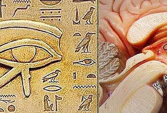 Hoy encontré en internet el siguiente texto que "copio y pego" porque me ha parecido interesante con respecto a la explicación que aporta el paralelismo de las imágenes de este post, puesto que representaban ese "sexto sentido".Transcribo :"Los antiguos egipcios ya sabían de donde viene la representación del ojo de la conciencia y la glándula que despierta la visión de la conciencia. Al clarividente se le conoce como aquel que tiene el arte de “ver” con otros sentidos, más allá de los cinco tradicionales. A la clarividencia se le llama a veces el sexto sentido. Los que cuentan con tal habilidad expresan que ven con lo que se llama “el tercer ojo”.La glándula pineal, localizada aproximadamente en el centro de la cabeza, es del tamaño de un garbanzo, pero según ellos antes era del tamaño de una bola de ping pong.La glándula tiene una apertura, con un lente para distinguir luz, es hueca y tiene receptores para distinguir colores y tiene una visión de 90 grados. El único sentido donde no puede mirar es hacia abajo.