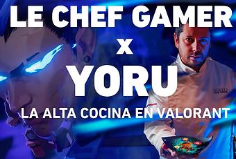 La nueva receta es un homenaje al recién presentado nuevo agente, Yoru, un maestro del engaño. Se trata de un ramen nipón con marcados tonos azules, un color paradigmático también para este personaje japonés, que procede del efecto que le otorga el uso del alga espirulina. A este ingrediente se le añade una suave crema de erizos y huevas de trucha infusionadas en vino oloroso, que le aporta toques anaranjados como la vestimenta del personaje. Finalmente, este guiso se baña con una base de caldo dashi tradicional, se le añade rape rebozado en polvo de aceituna negra, junto al alimento fetiche para Gallegos, el caviar ecológico de Riofrío y se presenta decorado con germinados y flores comestibles. En definitiva, un conjunto armónico de sabores, colores y un toque tradicional japonés para una creación culinaria de la cocina de Diego Gallegos, que hará las delicias de los jugadores y aficionados de VALORANT.