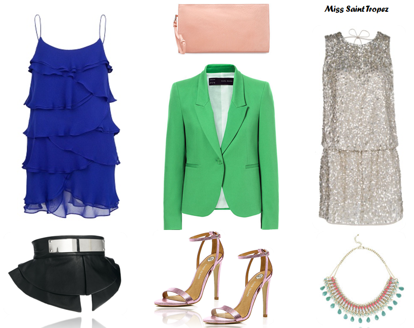 Vestido azul: Zara (49,99 €) - Cinturón fajín: Asos (33 €) - Sobre de mano: Zara (59 €) - Americana: Zara (49,95 €)
