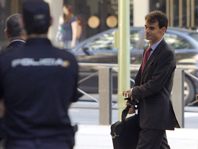 “Teddy” Bautista, saliendo de la Audiencia Nacional junto con Ricardo Azcoaga y Enrique Loras, tras declarar ante el juez Ruz.