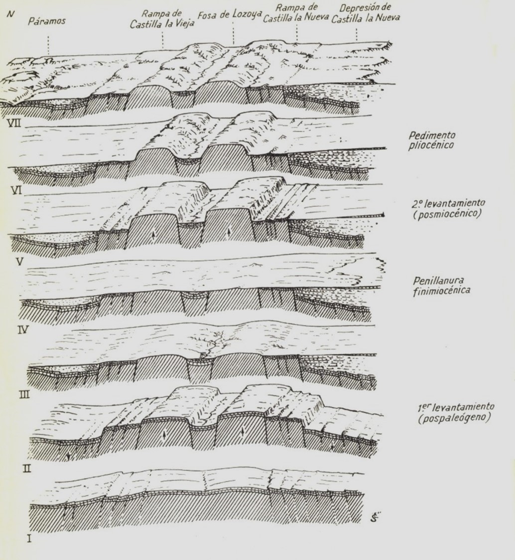 Las presiones sobre materiales muy rígidos y duros dieron como resultado un relieve de fractura (Germánico) con bloques elevados (Horst) y bloques hundidos (Graben). Se aprecia muy bien en este gráfico: