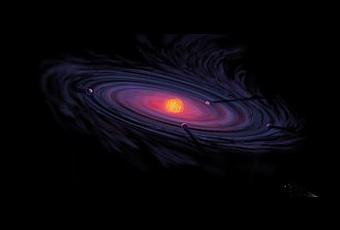 El Sol es el único cuerpo celeste del sistema solar que emite luz propia,9 debido a la fusión termonuclear del hidrógeno y su transformación en helio en su núcleo.10 El sistema solar se formó hace unos 4600 millones de años111213 a partir del colapso de una nube molecular. El material residual originó un disco circunestelar protoplanetario en el que ocurrieron los procesos físicos que llevaron a la formación de los planetas.9 El sistema solar se ubica en la actualidad en la nube Interestelar Local que se halla en la Burbuja Local del brazo de Orión, de la galaxia espiral Vía Láctea, a unos 28 000 años luz del centro de esta.14