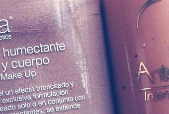 Entonces voy a mostrarles dos productos realizados por profesionales, uno de ellos es el maquillaje humectante para cara y cuerpo de Regina Cosmetics y el otro es el Lustre Corporal de Antology (de la marca Laca). Se trata de dos cremas con color y brillo que pueden usarse sobre cara (como bronzer o iluminador) o para dar un brillo especial en el escote, hombros y piernas.
