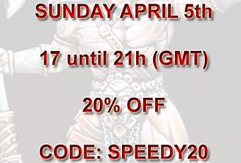 El Speedy Time está aquí!Solo este domingo 5 de abril de 17h a 21h (GMT) hay un 20% de descuento en todos los productos de la marca, usando el siguiente código: SPEEDY20