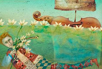 Ilustración Nerina Canzi.Siempre había sido el sueño del gran violinista tocar debajo del agua para que se oyese arriba, creando los nenúfares musicales.En el jardín abandonado y silente y sobre las aguas verdes, como una sombra en el agua, se oyeron unos compases de algo muy melancólico que se podía haber llamado “La alegría de morir”, y después de un último “glu glu” salió flotante el violín como un barco de los niños que comenzó a bogar desorientado.