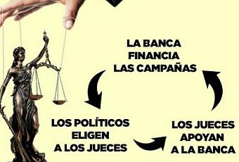 El círculo vicioso. Qué sucede cuando el poder (ejecutivo) y el poder (legislativo) corrigen al poder (judicial). O, lo que es lo mismo, ¿qué ocurre cuando el poder judicial se enfrenta abiertamente a los otros poderes? ¿Somos, acaso, mercancías en manos de jueces y de banqueros?, tal como rezaba el lema de las manifestaciones que se convocaron el 15 de mayo de 2011 en más de 40 ciudades de todo el Estado y que, en Madrid, fue especialmente numerosa, dando lugar al nacimiento del movimiento 15-M. “Desde entonces -explica Sato Díaz en Cuartopoder, el ‘régimen del 78’ ha sufrido grietas más profundas. A la económica y social que se arrastra desde la crisis y que ha aumentado estrepitosamente la desigualdad económica entre los más ricos y los más pobres, se le sumó la territorial… Y, si el 15-M sirvió para manifestar la falta de confianza en la ciudadanía hacia políticos y el sistema financiero, ésta se ha extendido por el resto de instituciones y poderes del Estado y, desde hace unos meses, se focaliza en la Justicia”. “Un sistema que se desmorona” –titulaba Víctor Chamizo el pasado 23 de octubre desde Rompamoslosgrilletes.wordpress.com–. Ya no puede caer más bajo: el Poder Judicial al servicio de la oligarquía financiera. Hasta la fecha se trataba de una especie de presentimiento, de una conjetura, de una sensación que muchos albergábamos y denunciábamos en artículos, o comentábamos en nuestros círculos de amigos. Pero, ahora, después del comportamiento del Tribunal Supremo, se trata de una evidencia. Han sido suficientes algunas horas para que el Tribunal Supremo frene en seco su propia sentencia. Ha bastado que la banca ponga el grito en el cielo para que todo se paralice. ¿Alguien piensa que, de este modo, la ciudadanía puede creer en el Sistema Judicial Español? ¿Dónde está el rey para defender la igualdad de todos los españoles ante la ley? ¿No se asoma hoy a las pantallas, a decirles a todos los ciudadanos que se debe cumplir la ley, que no va a permitir que se vulneren los sagrados principios constitucionales? Cuanto más avanzamos en esta farsa de democracia que el pueblo español se otorgó en el 78 más se observa lo corrompida que está. La podredumbre del sistema se hace cada vez más ostensible(…)Se hace imprescindible, cada vez de un modo más meridianamente claro, una revisión de la Constitución, del modelo de Estado, y una renovación de las más altas instituciones. El sistema se está desmoronando a pedazos”.