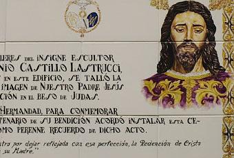 Fue, sin duda, uno de los grandes escultores sevillanos del siglo XX y, con motivo del cincuentenario de la bendición de la imagen de Nuestro Padre Jesús de la Redención en el Beso de Judas, la hermandad colocó este azulejo como recuerdo de dicho acto.