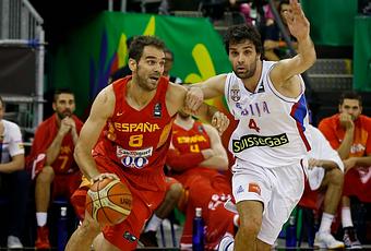 La puntería de Calderón, al que un vecino suyo de Villanueva de la Serena define como "una persona llana y sencilla que nunca se olvida de dónde viene y promociona lo que puede su pueblo", fue una de las grandes noticias del grupo de Orenga. El técnico se ganó una técnica tras un intercambio de palabras acalorado con su homológo serbio Djordjevic, que recibió la segunda y tuvo que abandonar la pista. Hacía poco menos de cinco minutos que Serbia se había acercado en el marcador con los persistentes Raduljica y Bjelica (66-76). Replicaron Ricky, titular de nuevo, y soberbio en casi todos los aspectos (10 puntos, seis asistencias, siete recuperaciones y lo peor, otras siete pérdidas); Pau Gasol (20 tantos) y Marc (11). Antes Navarro se había mostrado casi infalible (5/7 en tiros, 15 tantos) en una cita en la que el seleccionador español apenas hizo rotaciones. Entre Claver, Abrines y Reyes no llegaron a contabilizar ni 13 minutos.