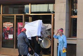 En la fiesta de inauguración, que se celebró esta tarde participaron la banda de música TxisPun Bras Ras Band y miembros de las compañías circenses Duelirium, Circocido y Maintomano. Un espectáculo cómico circense que animó a las personas que esperaban pacientemente desde las 20h a las puertas del Teatro. La fachada del teatro y el mobiliario urbano, sirvieron de improvisado escenario.