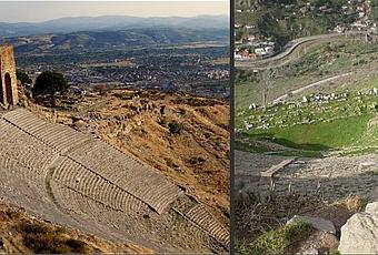 Construido en el Siglo III A.C, en Pérgamo, (griego Πέργαμος) en el noroeste de Asia Menor (actual Turquía), a 30 km de la costa del mar Egeo y frente a la isla de Lesbos, en la región llamada Misia, se hallaba situado en la acrópolis de dicha ciudad, dominando el paisaje donde ahora se encuentra la actual ciudad de Bergama. Contaba con mas de 70 filas y tenia capacidad para unos 10.000 espectadores, fue considerada la construcción mas innovadora del mundo Helenistíco, donde sus 40 metros de altura, hacen función de mirador y terraza.