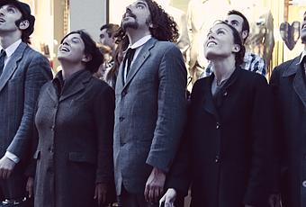 El estruendo de los aplausos se va difuminando, el teatro no para, y en otro lugar comienza otra representación. En la calle Maltería, un grupo de personas acompañadas por sus maletas están sentadas en la acera, se trata de la compañía Kamchàtka. Todos aquellos que cerraban el círculo alrededor de estos llamativos viajantes estaban expectantes, no entendían qué es lo que estaba pasando. Los dueños de las maletas sacaron de ellas fotografías que, con cara de nostalgia mostraron al público. Los viajeros buscaban algo, a alguien pero andaban por la ciudad como sin rumbo. Buscaban cobijo quizás, trepaban por los edificios en busca de una casa donde quedarse, pero debía seguir su camino, pero ¿hacia dónde?