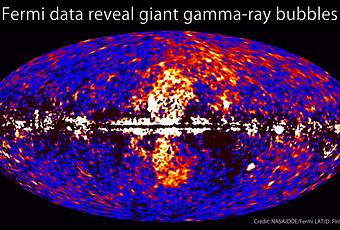 Después de dos años acumulando datos y los investigadores encargados de analizar los datos han descubierto dos enormes estructuras en forma de burbuja que emergen desde el centro de nuestra galaxia. Tienen el enorme tamaño de 50.000 años luz, teniendo en cuenta que la Vía Láctea tiene 100.000 años luz, y su origen es desconocido. Más información, en inglés, en la página de la NASA.