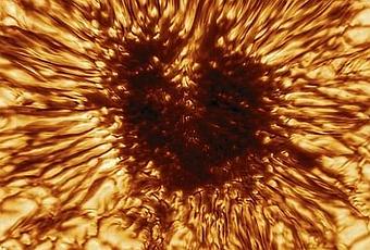 El Telescopio Solar Daniel K. Inouye de la Fundación Nacional de Ciencias de EE.UU., ubicado en Hawai , logró la captura de una gran mancha solar con una resolución espacial aproximadamente 2,5 veces más alta que nunca, y el telescopio aún se encuentra en sus etapas de finalización. La imagen muestra el centro oscuro de la mancha solar, que arde a 7500 grados Fahrenheit (4150 °C) a pesar de ser más fría que el área circundante del astro rey. La mancha solar completa mide alrededor de 10.000 millas de ancho (unos 16.000 kilómetros), lo suficientemente grande como para que toda la Tierra entre cómodamente.