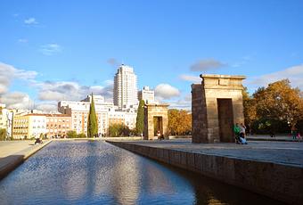 El templo fue donado a España por el gobierno egipcio para evitar que quedara inundado tras la construcción de la gran presa de Asuán. El Templo de Debod data de hace más de 2.000 años, de la época de Ptolomeo IV, y está dedicado a Amón.