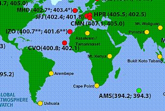 Fracciones molares preliminares de CO2 en las estaciones mundiales de la Vigilancia de la Atmósfera Global (VAG) (marzo y abril de 2014)