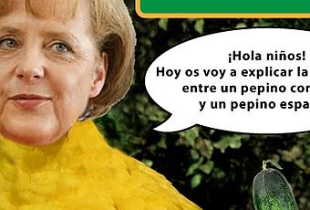 Bueno, pues aquí estamos de nuevo, con el post de: "El tonto del lunes".Por desgracia para la señora Merkel, repite como ganadora del ilustre premio otorgado por el foro.En esta ocasión, se lo lleva por "el tema de los pepinos".Como todos sabéis, en Alemania, se han dado varios casos de infectados por la bacteria Escherichia coli, que portaban unos pepinos de origen malagueño. Bien, pues segun parece, los pepinos estaban en perfecto estado, el problema pudo venir porque la mercancía cayó al suelo en el mercado de Hamburgo, donde rodó alegremente, fue manipulada, y donde parece ser se contagió.La señora Merkel, en lugar de averiguar el origen de la bacteria, o las posibles causas, se dedicó a señalar con el dedo en plan E.T. a nuestro país, haciendo campaña contra nuestros pepinos.Como todo el mundo sabe, el pepino español, es el mejor, más grande y más sabroso... la saña con la que daba mala publicidad a nuestros pepinos, puede deberse a que ella misma puede necesitar uno bien grande, y no sabe donde ni como conseguirlo.Por estos hechos, y por al autoridad que me confiero a mi mismo, le otorgo el premio de: El Tonto Del Lunes